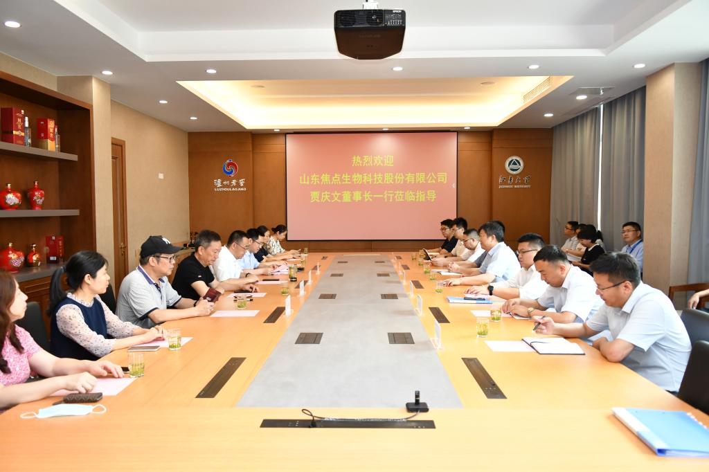 、药学院与焦点生物的深度融合,助推相关成果的转化落地。贾庆文介绍了山东福瑞达医药集团公司和山东焦点生物科技股份有限公司的基本现状和战略发展规划,并对此次公司与学校发酵工程及生物制药学科的合作表示高度赞赏和期待,希望联合研发中心聚焦主题开展全方位产学研合作;同时指出此次合作既是焦点生物的重要战略部署,也是进一步推动学校相关优势团队与福瑞达深度合作的良好开端。殷宝良介绍了江南大学国家大学科技园的概况,并表示科技园作为学校科研成果转移转化的重要平台,将充分发挥资源优势,围绕与焦点生物公司的战略合作,制定周祥的计划,推动联合研发中心的建设工作稳步进行。