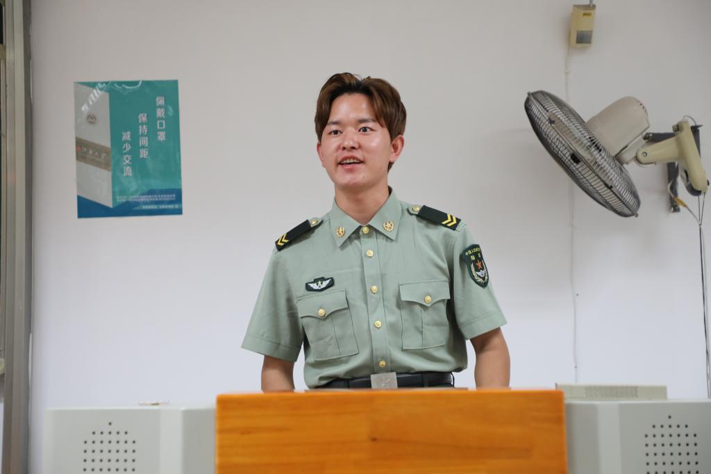 大会开始,服役两年后退伍的段凯同学与新生们进行了经验分享,介绍了入伍原因及政策,同时用幽默风趣的语言讲述了部队生活的有趣之处,让同学们了解到他艰苦却有意义的军队生活。之后,段凯与同学们进行了交流互动,回答同学们对军训的疑惑,并为即将军训的20级学生提供了军训建议,同学们都表示受益匪浅并回以段凯学长热烈掌声。