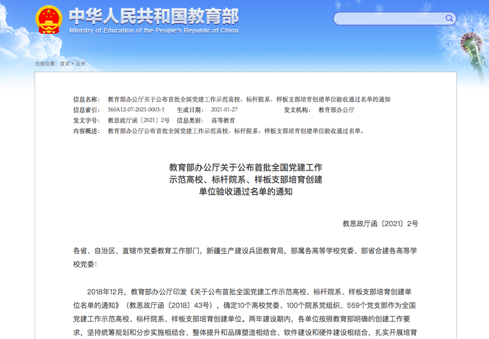 日前,教育部办公厅发布了《关于公布首批全国党建工作示范高校、标杆院系、样板支部培育创建单位验收通过名单的通知》。UED体育