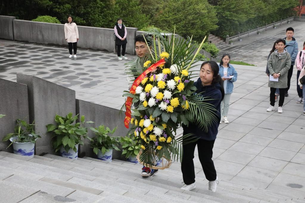 大家怀着无比崇敬的心情来到宜兴革命纪念园。活动现场,伴随着庄严肃穆的《义勇军进行曲》,同学们全体肃立、奏唱国歌。国歌唱毕,全体师生向为革命事业英勇献身的革命烈士默哀。随后由基地班学生代表向革命烈士纪念碑进献花篮,同学们均怀着沉重的心情,缅怀先烈,寄托哀思。2020级辅导员宋大有对同学们讲到,要牢记在中国共产党领导下,革命先辈们的英雄故事,铭记先烈们的丰功伟绩,传承先烈们不怕牺牲、甘于奉献的大无畏精神。