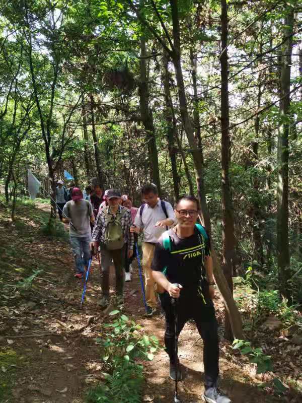 分工会委员郑飞云老师进行了热情洋溢的活动介绍,他希望参与人员发扬勇于挑战、团队协作的精神,通过户外运动得到身体上的锻炼、精神上的愉悦和意志上的历练。分工会委员周楠迪老师介绍了此次登山活动的比赛规则和安全提示,并强调了做好环保工作。方芳老师向大家介绍了登山杖的使用方法以及注意事项。随后,8支队伍在队长的带领下取好队名和口号,分工会副主席徐静老师为各队队长授旗,一声令下各队依次向山顶进发。