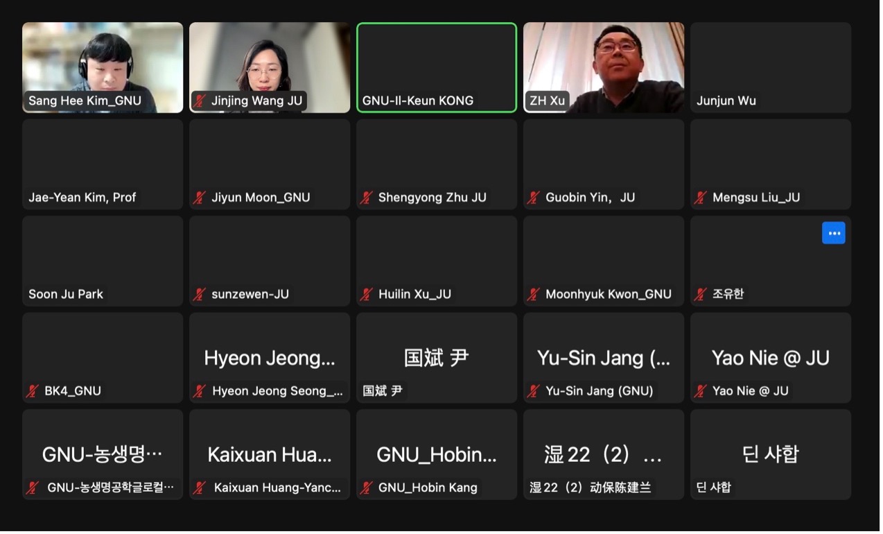 韩国庆尚国立大学应用生命科学系Ilkeun Kong主任、SangheeKim教授、MoonhyukKwon教、JongheeKwon教授,UED体育官网 院长许正宏教授、副院长聂尧教授、吴俊俊教授、院长助理王金晶副教授等参加了开幕式。本次论坛由庆尚国立大学主办,开幕式上,Ilkeun Kong系主任表示由于疫情的影响,今年仍然以线上方式举行双边论坛,希望以双边论坛为纽带,双方能够进一步拓展学术交流,更广泛、更全面、更深入地推进两校的交流合作。许正宏表示,疫情并未切断双方的联系,希望通过此次云论坛的举办,双方能够进一步推进科研合作、深化国际友谊,同时许院长也表达了未来能够在线下举行双边论坛的期望。