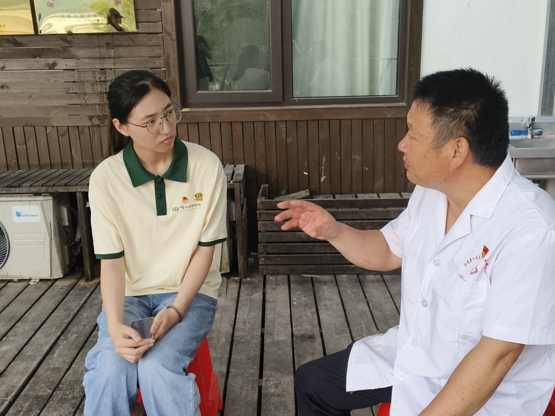实践小组成员对余家军、吴起娇夫妇进行了采访。二十多年来,只要一有电话,无论轻重缓急,余医生都会立刻开船出诊,前往零星分布的岛屿,爬上崎岖的山路,无论刮风下雨都第一时间提供医疗帮助,对于少数独居且行动不便的老人,即便是深夜,余医生也会立即出诊。正是几十年如一日的坚守,岛上村民重大疾病发病率大大降低。除此之外,余医生还自费购买医疗设备,为每位村民建立专属的档案,与他们的交流中实践团同学深刻体会到了红色基因的传承,在这片英雄土地上,正因为有余医生这样无私奉献的力量,才能传承与发扬红色文化,将全民小康惠及每位公民。