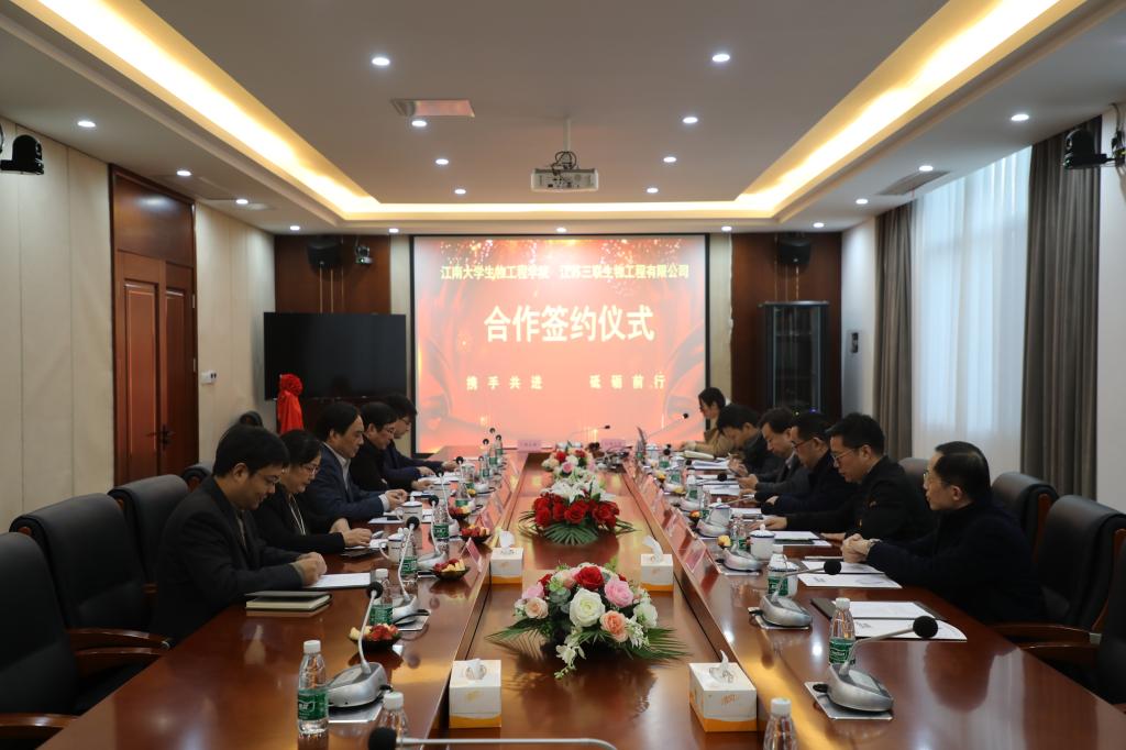 党委书记王维、院长许正宏一行赴江苏三联生物工程股份有限公司进行考察交流并举行合作签约仪式。无锡空港经济开发区党工委书记陈伟良、江苏三联生物工程股份有限公司董事长施启尧等领导共同参加签约仪式,活动由江苏三联生物工程股份有限公司人事负责人冯燕主持。