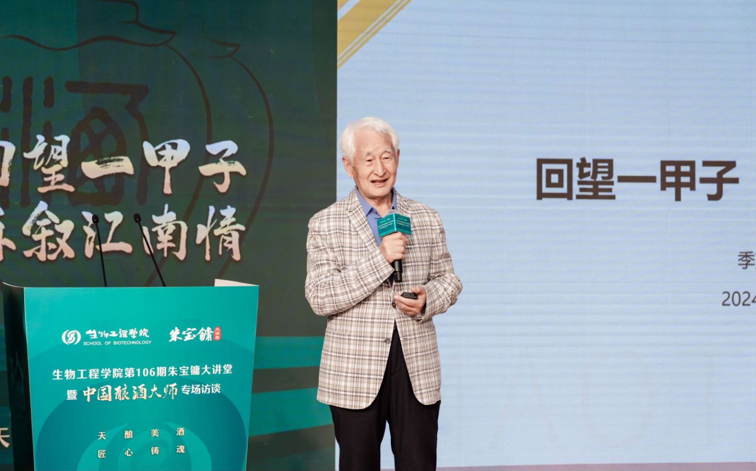在北区活动中心举办第106期朱宝镛大讲堂暨中国酿酒大师专场访谈会。活动特邀我校发酵1959级校友、茅台集团原董事长季克良先生作专题讲座。