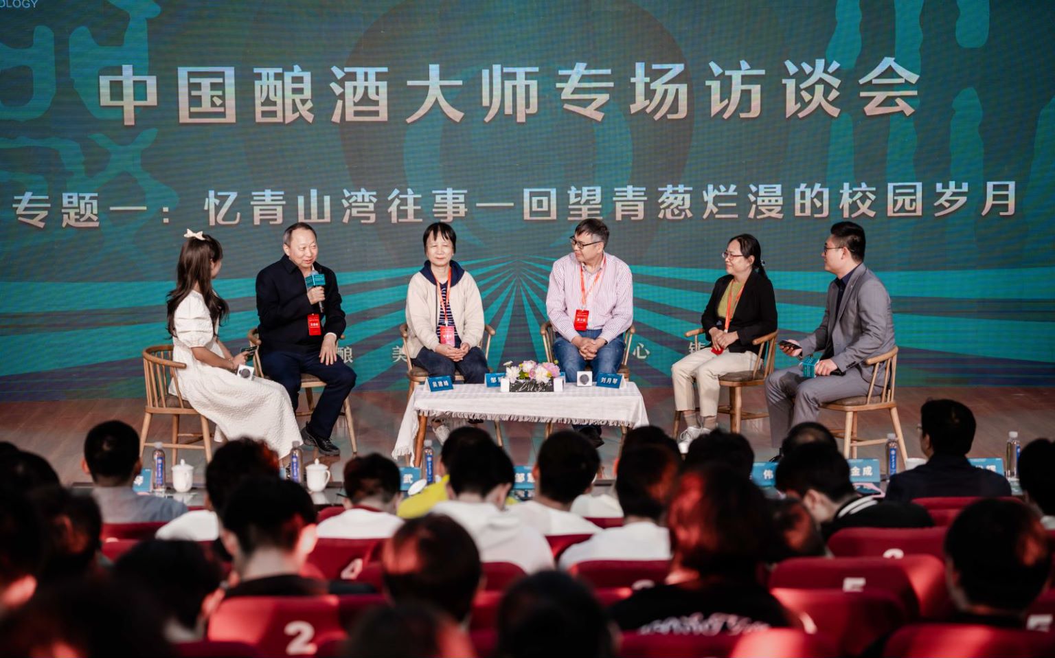 在访谈环节中,被授予“中国酿酒大师”称号的8位校友与在座同学共同回望青葱烂漫的校园岁月,共同畅谈波澜壮阔的从业历程。